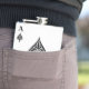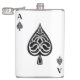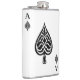 Made to look like an ace of spades playing card or a trump card, this design features an ornate spade illustration in black and white.