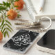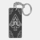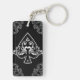 Lucky keychain featuring a black and white ornate vintage ace of spades illustration with baroque floral embellishments.