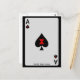 The red hour glass mark of the black widow is stamped on the spade of this ace card design.
