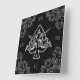 Custom wall clock featuring a black and white ornate vintage ace of spades illustration with baroque floral embellishments and Roman numerals as hour markings.