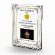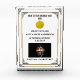 A faux golden seal for your school, business, college or varsity logo and a photo template for your employees photograph is framed by a thin gold border that has ornate floral corner points and templates for your personal wording to record an outstanding achievement appear in bold black fonts on a white background. Personalize the templates to suit your requirements.