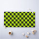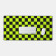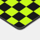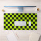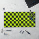 A vibrant checkerboard pattern with alternating neon yellow and black squares creates a striking geometric design, conveying a bold and energetic tone.