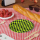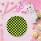 Acid green black checkerboard pattern paper plates