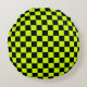 Acid green black checkerboard pattern round pillow