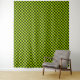 A vibrant checkerboard pattern with alternating neon yellow and black squares creates a striking geometric design, conveying a bold and energetic tone.