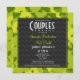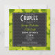 Cute Couples Shower invitation with cool Acid Green Camo; Camouflage pattern and dark gray modern chevron background.