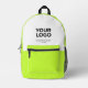 Acid Green and white | Personalized Business Logo and Text professional Printed Backpack