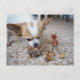 Acorn elf feeding chihuahua - funny postcrossing postcard with a dog