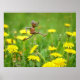 Acorn elf jumping on dandelions on the meadow - funny summer poster