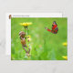 Acorn elf on dandelion with butterfly on the meadow - funny summer postcrossing postcard
