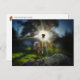Acorn elf with the light dandelion - funny postcrossing postcard