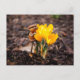Acorn elf with yellow crocus saffron flower spring postcard - funny postcrossing postcard