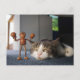 Acorn elf won a boxing match against a cat - funny postcrossing sporty postcard
