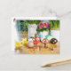 Acorn elves playing with Easter eggs - funny Easter postcard with decorated eggs