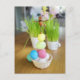 Acorn elves playing with Easter eggs - funny Easter postcard with decorated eggs