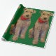Wrapping paper for the airedale lover in you. Our obstinate airedale mascot, Acorn poses with his red bandana against a green background. Merry holidays!
