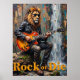 This striking painting captures a majestic lion, adorned with sunglasses and a leather jacket, delivering a powerful acoustic performance while perched on a log. Behind him, a vibrant waterfall plunges into a blue stream, creating a natural stage. The artist's use of bold, textured brushstrokes emphasizes the rugged beauty of the setting and the "Rock or Die" attitude, bringing this unexpected concert to life.