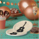 An acoustic guitar art design featuring a guitar with a beige script background. Makes a perfect gift for any guitar player or musician or anyone who loves music.