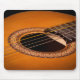 Closeup photograph of a dramatically-lit acoustic guitar's sound hole