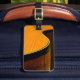 On the front, an abstract photograph of the colors and curves of a classical guitar, and on the reverse, a section of guitar neck into which you simply type your information to make it yours. Just type into the boxes under "personalize it". Great for your guitar case or any traveling musician or music lover.