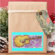 shows colourful acoustic guitar with yellow patina from original mixed media art !