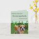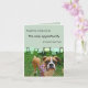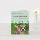 A great photograph of a young Boxer dog standing in the grass near beautiful flowers adorns the front of this card. A mint green background with a retro design and text that reads: "Acquiring a dog may be the only opportunity a human ever has". Inside customizable text reads: "to choose a relative". Because both the cover and the inside text of this card are completely customizable, you are free to use this trendy design for almost any occasion. The original design is an ideal card for someone who is a newly adoptive doggy parent but feel free to customize the text to suit your needs!