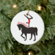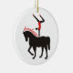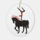 Acrobatics on horseback custom ornament featuring a woman in red doing acrobatics on a black horse silhouette.