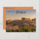 This postcard features a photograph of Greece. Photo credit to Constantinos Kollias, 2020, who states, "View of Acropolis of Athens with Parthenon and Herodium Erechtheion from Filopappou hill. Herodium, Lycabettus and Acropolis of Athens view from Filopappou hill a summer sunny day".