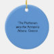 Round ceramic ornament with an image of the glorious Parthenon atop the Acropolis and the arches of the Herodes Atticus amphitheater below in Athens, Greece. The back is blue with customizable text. See the entire Greece Ornament collection in the HOME section.