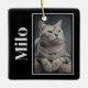 Honor your beloved companion and treasure the memories with a personalized pet memorial photo Christmas ornament, featuring a unique silver heart and border design. This holiday ornament makes a heartfelt gift for yourself, family, or friends, serving as a beautiful tribute to a cherished cat. We hope this keepsake brings you comfort, peace, and fond recollections of your furry friend. Add your favorite photo. Black chic background.
