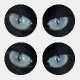 Cat eyes. Two each of right and left eyeballs of black cat. Eyes are a slate green color, and reflections shine off of the lenses. Corners of eyes also show slight reflections.