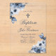 Dusty blue, blue flower baptism invitation for boy