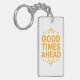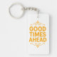 Keep positive vibes close with this "GOOD TIMES AHEAD" acrylic keychain. Double-sided and rectangular. Perfect for keys, bags, or as a gift. Easily personalize by adding your own custom text, names, dates, or photos! Great for daily inspiration.