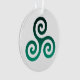 Green Triskele symbol. The Triskele or Triskelion symbol consists of three interlocked spirals or three arms as if it is moving from its center. This Celtic symbol of movement or action represents the three worlds; the celestial, physical, and spiritual.