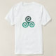 Green Triskele symbol. The Triskele or Triskelion symbol consists of three interlocked spirals or three arms as if it is moving from its center. This Celtic symbol of movement or action represents the three worlds; the celestial, physical, and spiritual.
