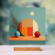 An acrylic painting that reflects the beauty of simplicity through innovative geometric composition and the use of warm colors like teal and orange. The artwork features an abstract style that combines geometric shapes with a modern touch, creating a balance between form and color. Its focus on simplicity and function makes it an embodiment of modernity and contemporary art, with a three-dimensional aspect that draws the eye through color contrast and shadow play.