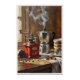 This captivating piece, executed with the Impasto palette knife technique , captures the peaceful ritual of morning coffee. Set against a sunlit window, the composition features a gleaming French press , stacked mugs adorned with Latte Art hearts , scattered coffee beans, and cinnamon sticks. The thick, visible texture adds a rustic, tangible quality to the scene. Dominated by warm, glowing light and natural wood tones, this artwork is the ideal accent for a kitchen countertop , a cozy breakfast nook, or any space needing a touch of warm, rustic elegance .