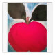 A massive, vibrant red apple with dark, wing-like leaves set against a bright sky-blue backdrop. It represents the nurturing of young minds, where the teacher provides the "stem" and "leaves" of support to help the fruit of knowledge grow large and bright.