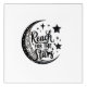 Acrylic painting featuring a half moon on the left side, with stars twinkling on the right. The entire design is in black and white, creating a striking contrast. The stars shimmer softly, adding a sense of wonder and serenity, while the quote 'Reach for the Stars' is integrated into the composition, offering an inspirational and calming touch.