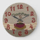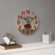 Clock with textured background, featuring coffee cup and textured coffee text. Brown and dark red colors.