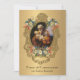 This is a beautiful traditional Catholic image of St. Joseph holding the Child Jesus on a floral vintage background. On the back is the PRAYER OF CONSECRATION TO ST. JOSEPH
