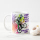 A Christian theme mug for the bible verse Acts 17:28. This has the theme of a mountain or bmx bike. The scripture is For in him we live and move and have our being