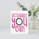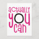 Funky typography with encouraging quote Actually You Can in pink with a touch of black on a white background. The background can be changed to different color if you so wish.