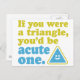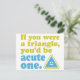 This cute, funny math design is perfect for geometry experts. Text says: If you were a triangle, you'd be acute (a cute) one.