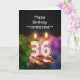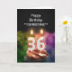 Burning 36th birthday cake candles in the shape of numbers on top of a chocolate cupcake. Customize with the name of the birthday person. Suitable for a man or a woman. See the whole range of cards for ages and relationships in my store. All artwork copyright Norma Cornes