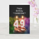 Burning 49th birthday cake candles in the shape of numbers on top of a chocolate cupcake. Customize with the name of the birthday person. Suitable for a man or a woman. See the whole range of cards for ages and relationships in my store. All artwork copyright Norma Cornes