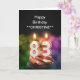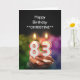 Burning 83rd birthday cake candles in the shape of numbers on top of a chocolate cupcake. Customize with the name of the birthday person. Suitable for a man or a woman. See the whole range of cards for ages and relationships in my store. All artwork copyright Norma Cornes