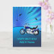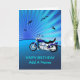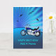 Happy birthday card with a motorbike. A perfect card for a biker. A blue motorbike with a stylized sunset and flying birds. Any bike enthusiast will love to get a card like this. Add a name to personalize this card. Customize it with any name!