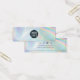 Modern earrings mini product display card with custom brand logo in the middle and the guides for punching holes so they stay proportional and aligned in the center on each side of the logo.