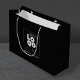 Available in matte or glossy finish, promotional gift bags custom branded with a custom business logo add a professional touch to corporate gifts, giveaways, and retail shopping bags, while advertising the company. Made by Digiwrap. No minimum order quantity and no setup fee. This bag is set on a black background, ready for a white or light colored logo graphic, or logo with a background behind text elements.